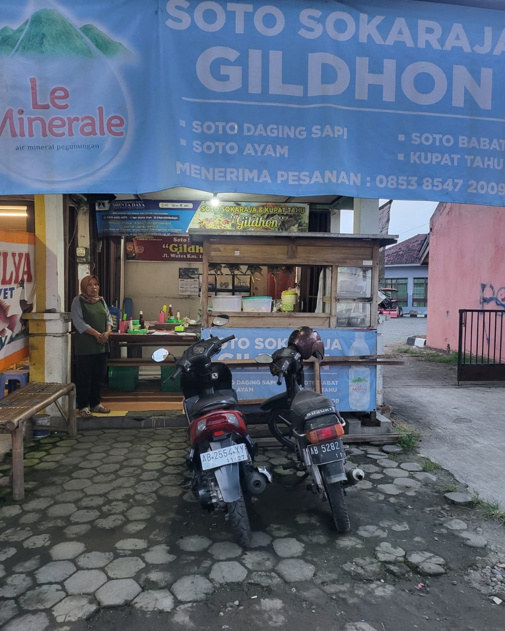 Menjual makanan Soto Khas Sokaraja dan lauk pendamping serta aneka snack.